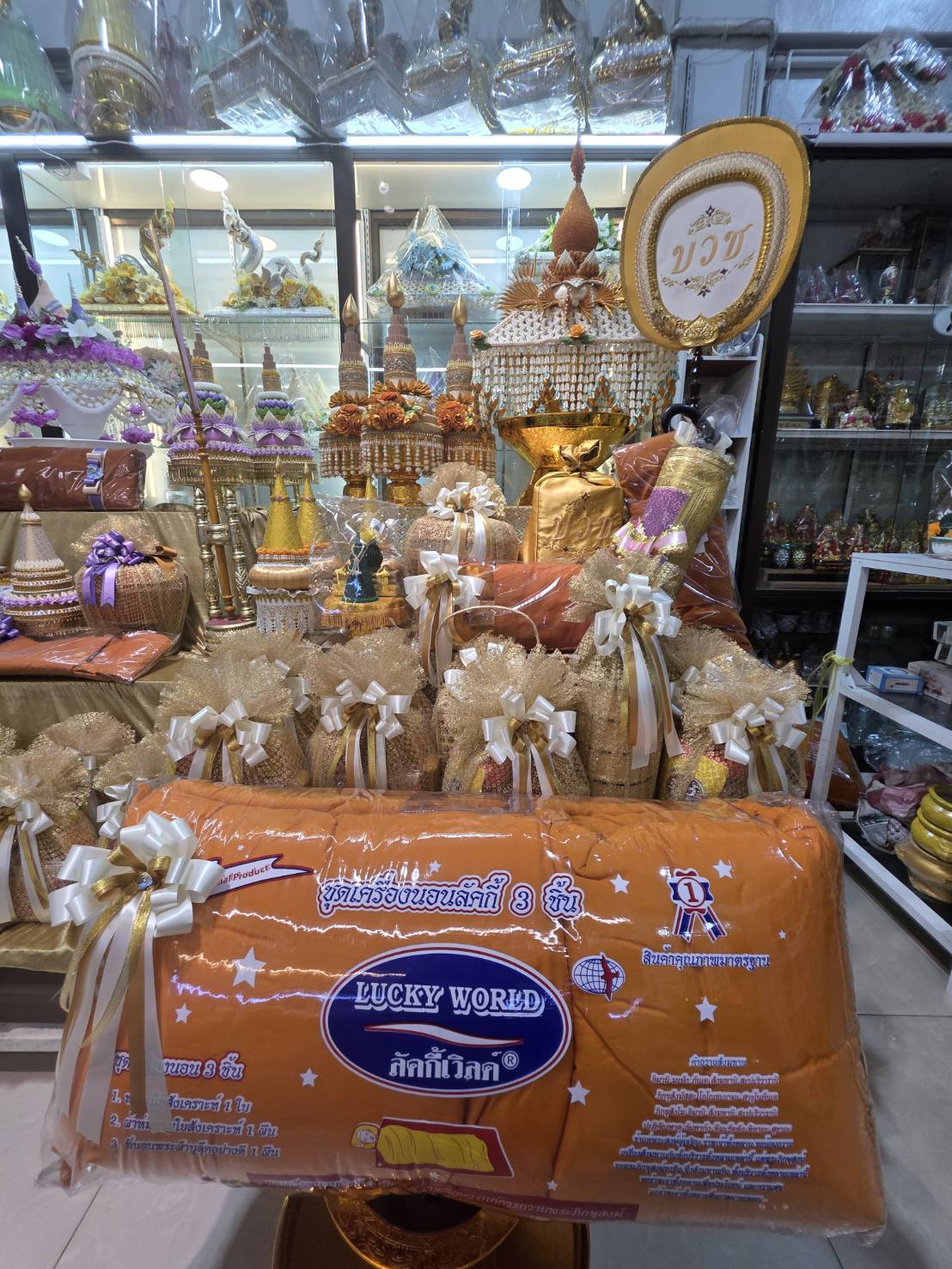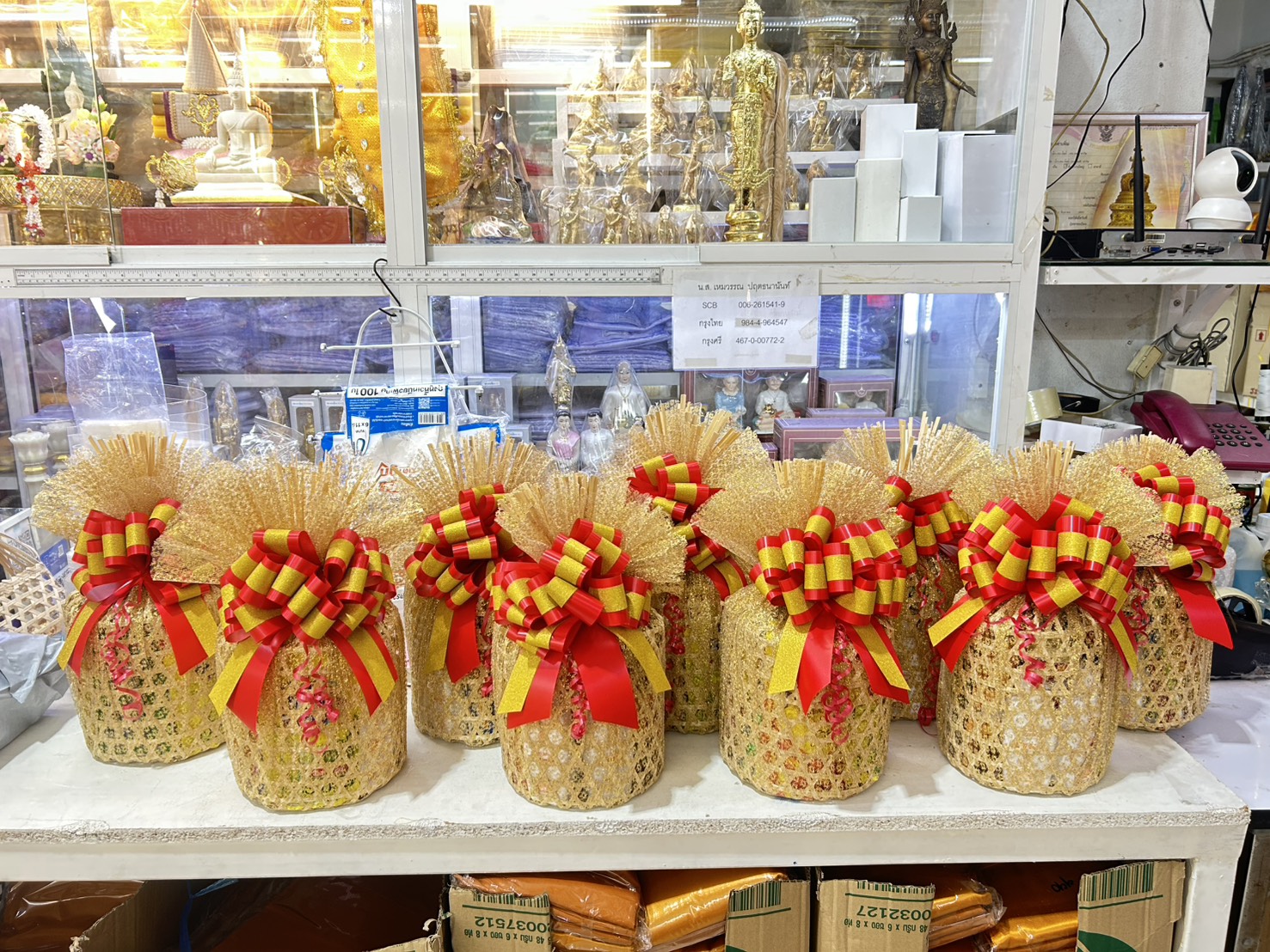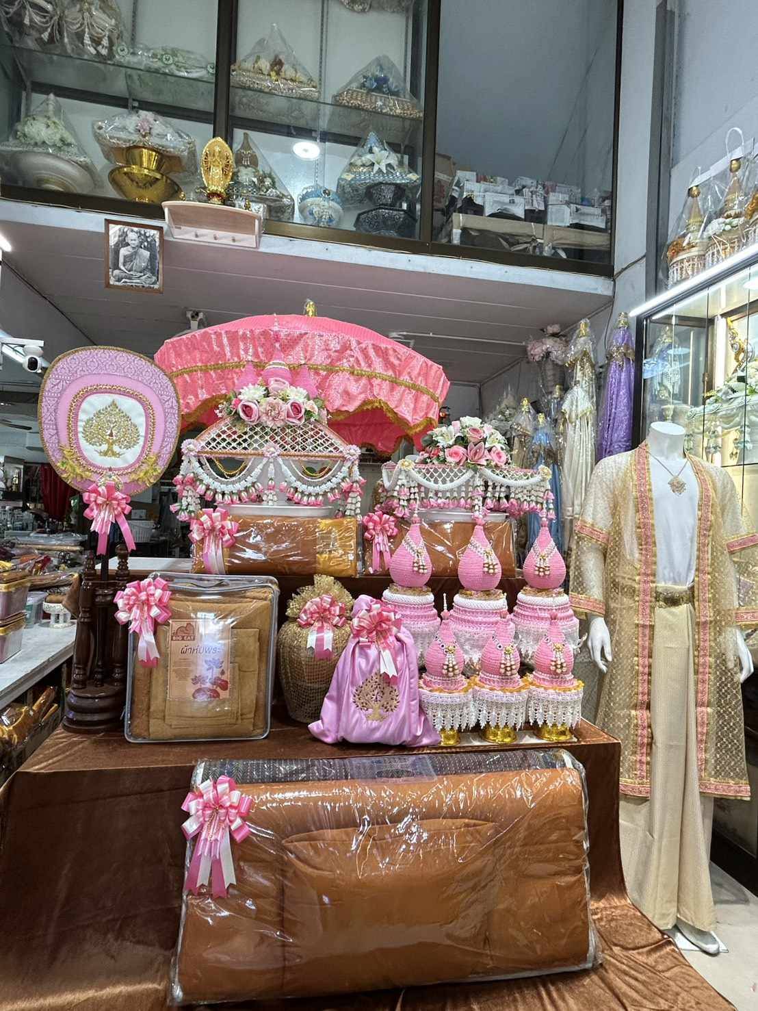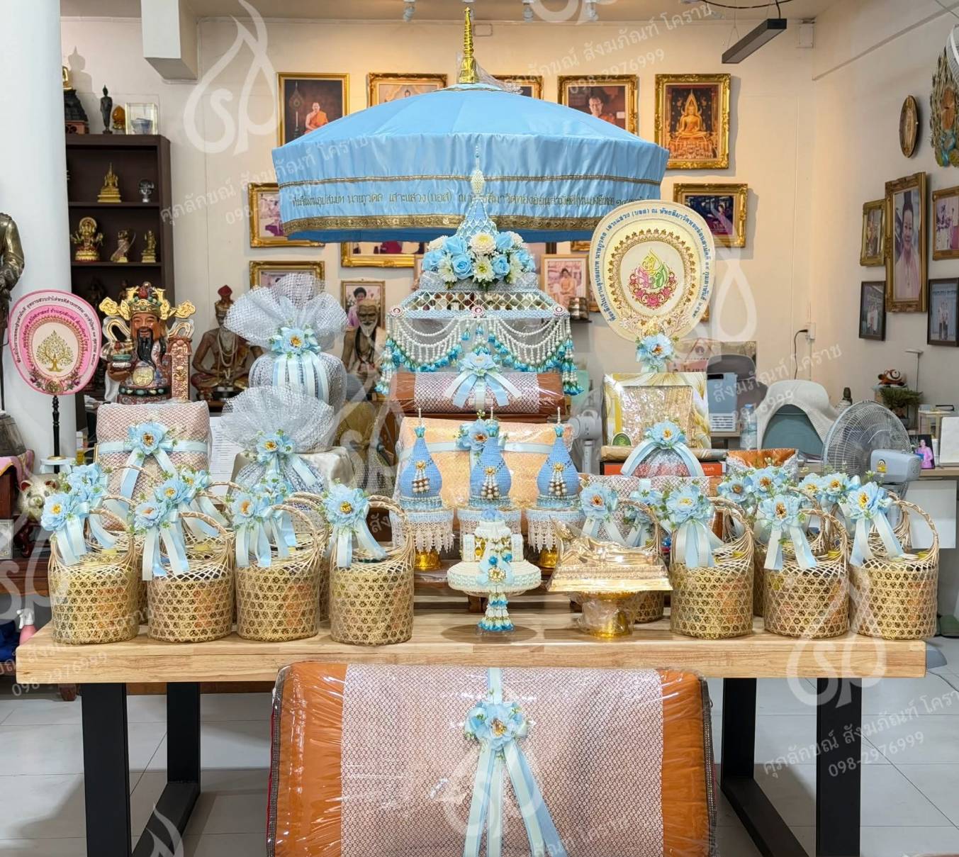 คลุมไตร ต้นเทียน กรวย ตะเกียง โต๊ะแต่งงานและชุดรดน้ำ หิ้งพระ ธรรมาสน์