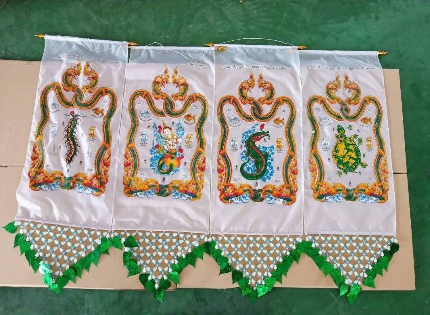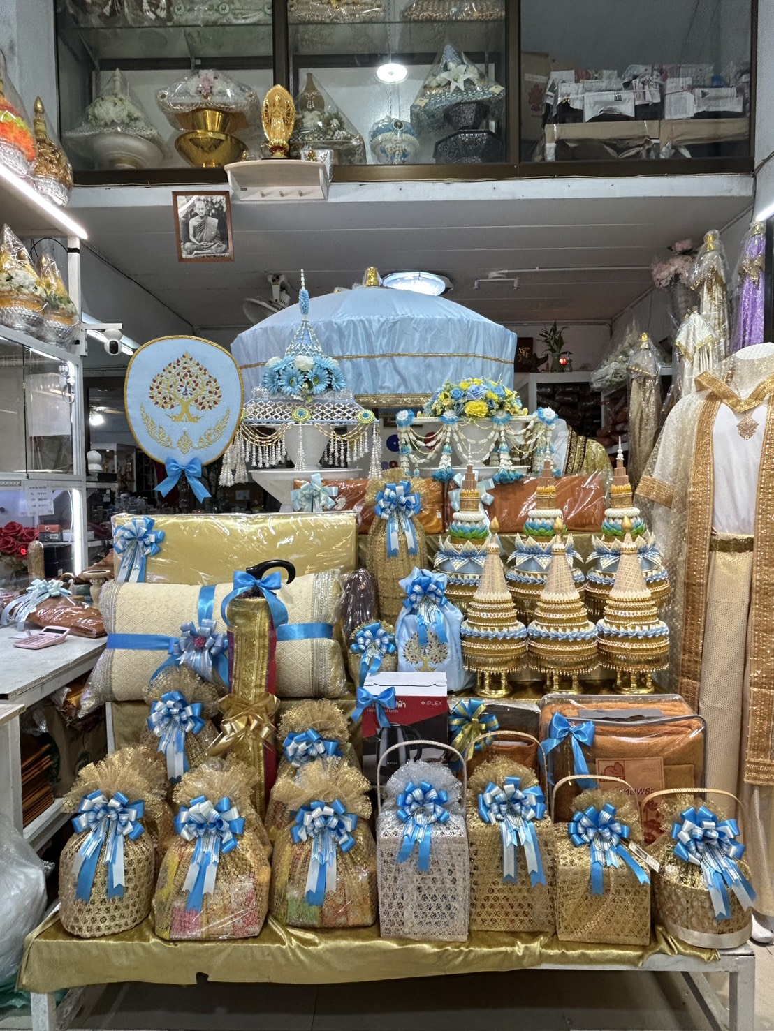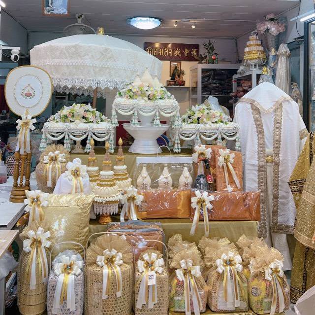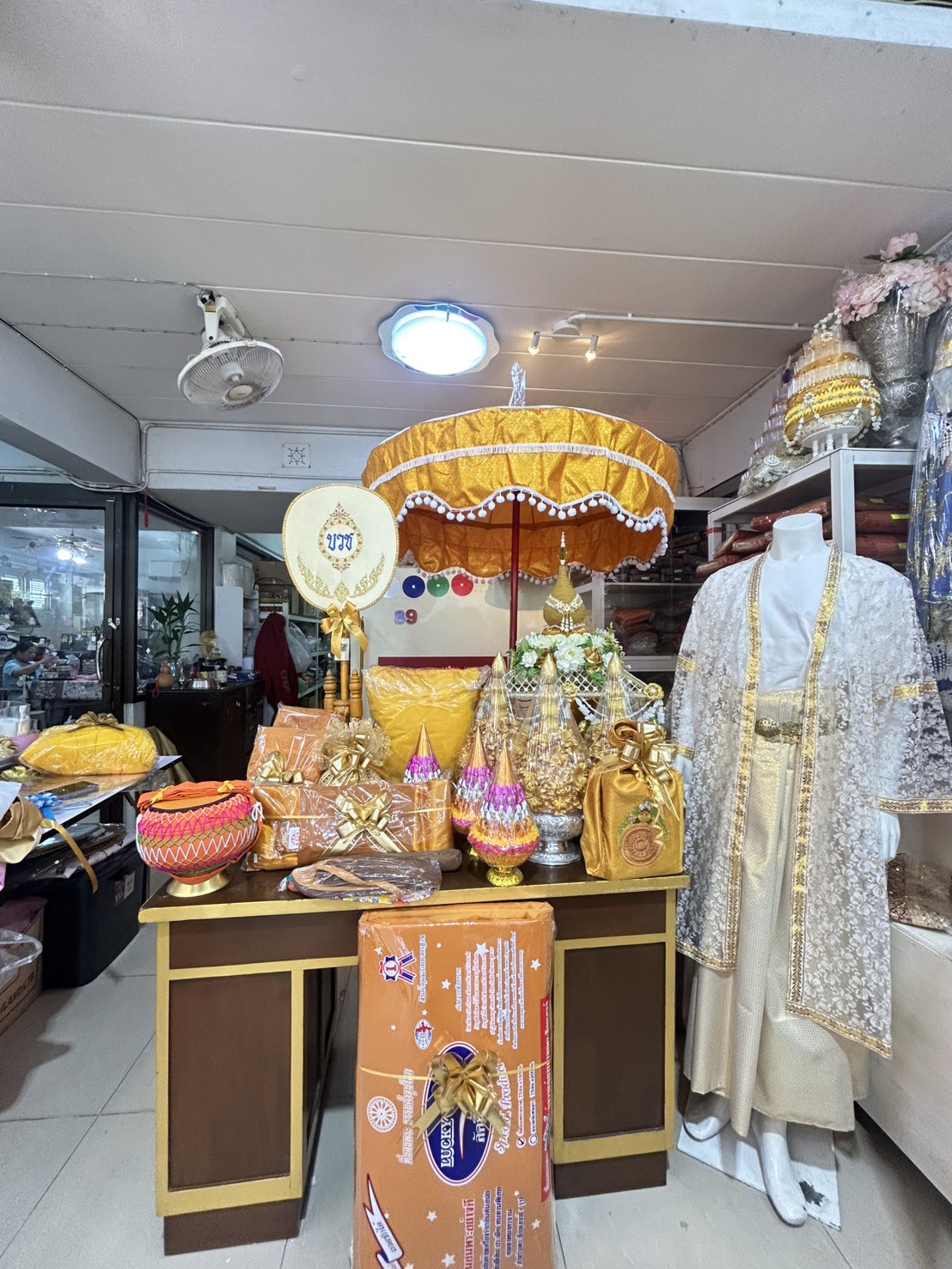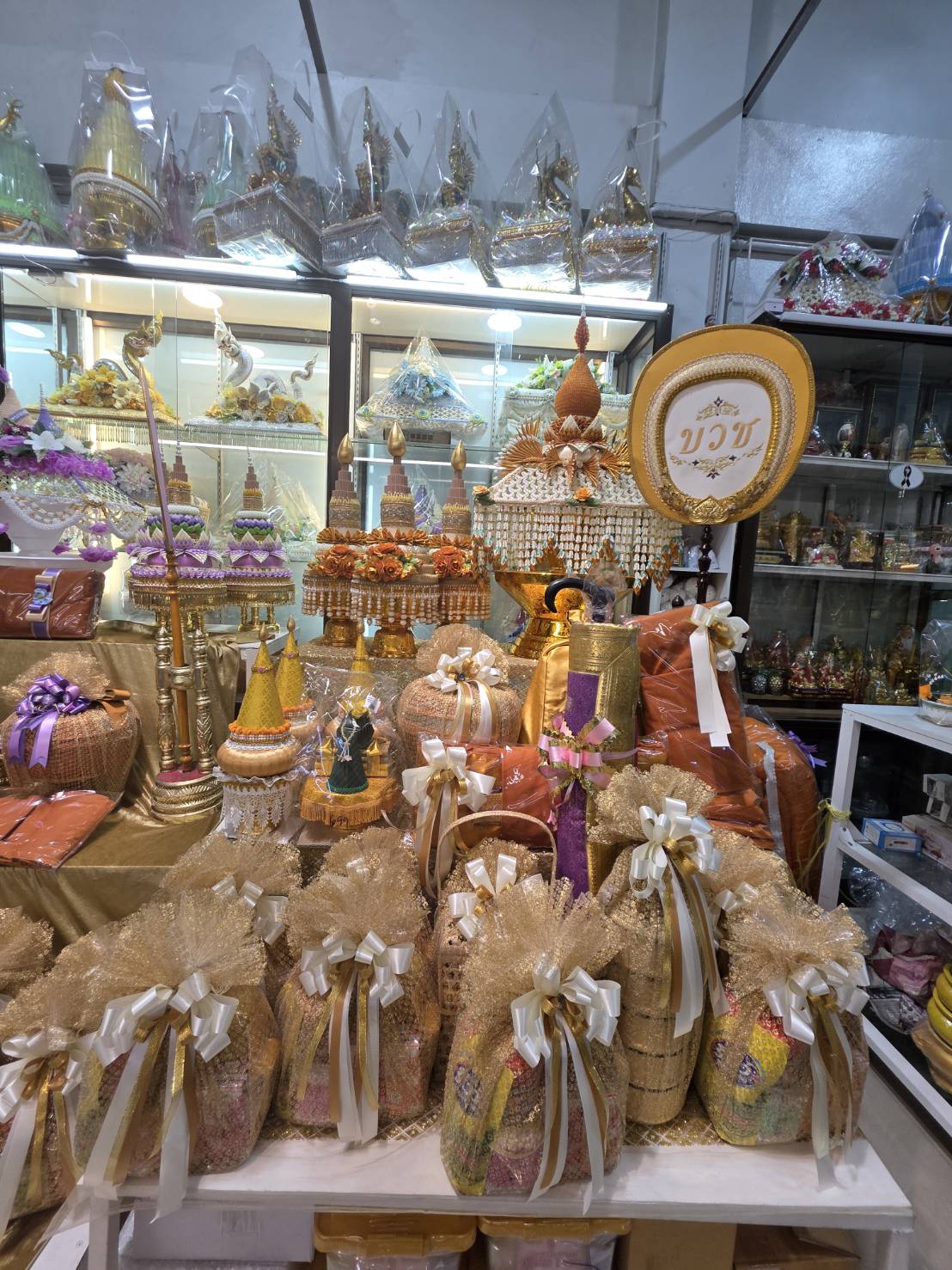 คลุมไตร ต้นเทียน กรวย ตะเกียง โต๊ะแต่งงานและชุดรดน้ำ หิ้งพระ ธรรมาสน์