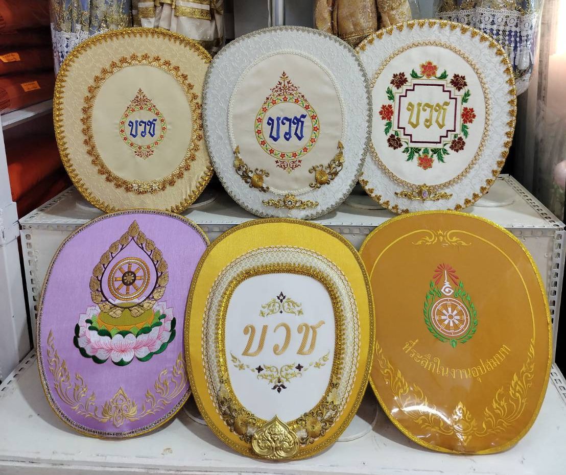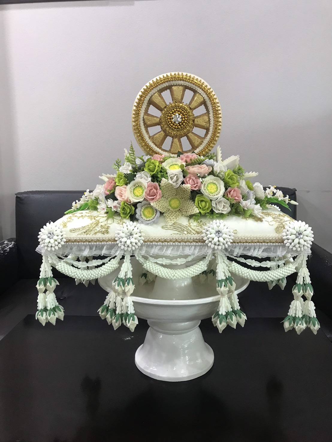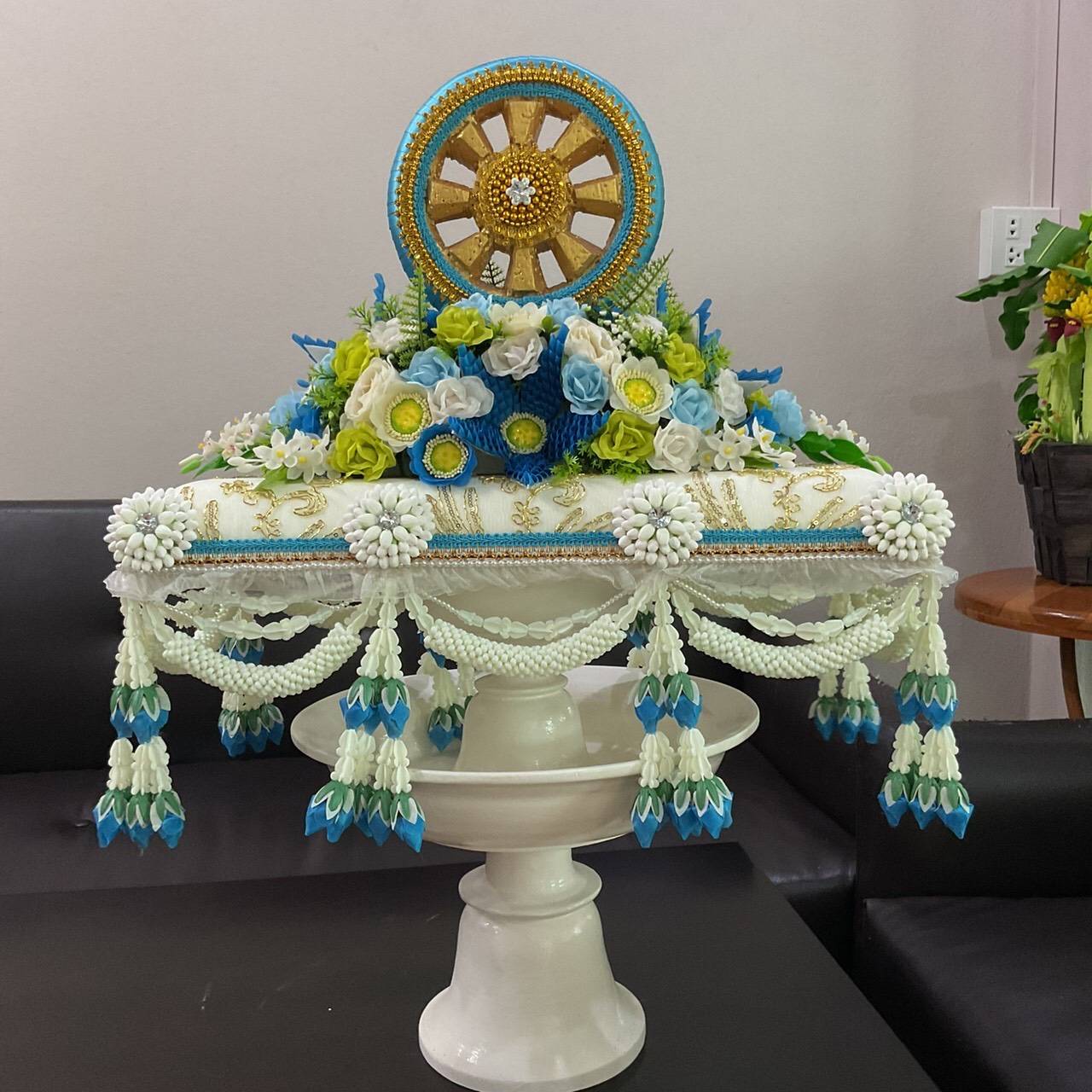 ตาลปัตรและขาตั้งตาลปัตร ถุงย่าม สัปทน หมอนอิง อาสนะ พานแว่นฟ้า ดอกไม้