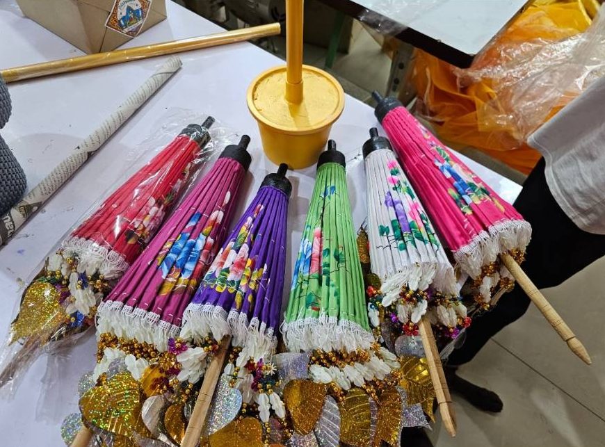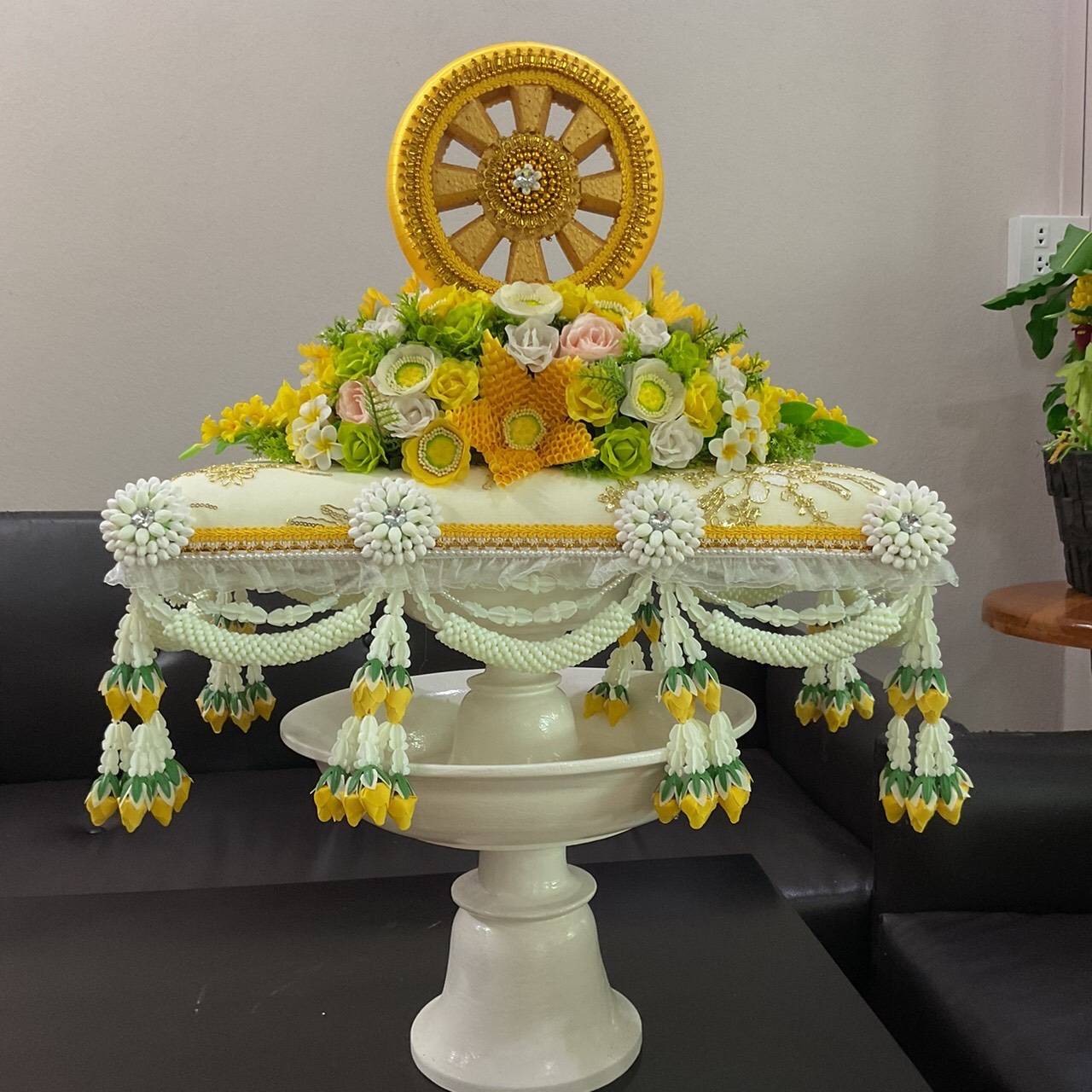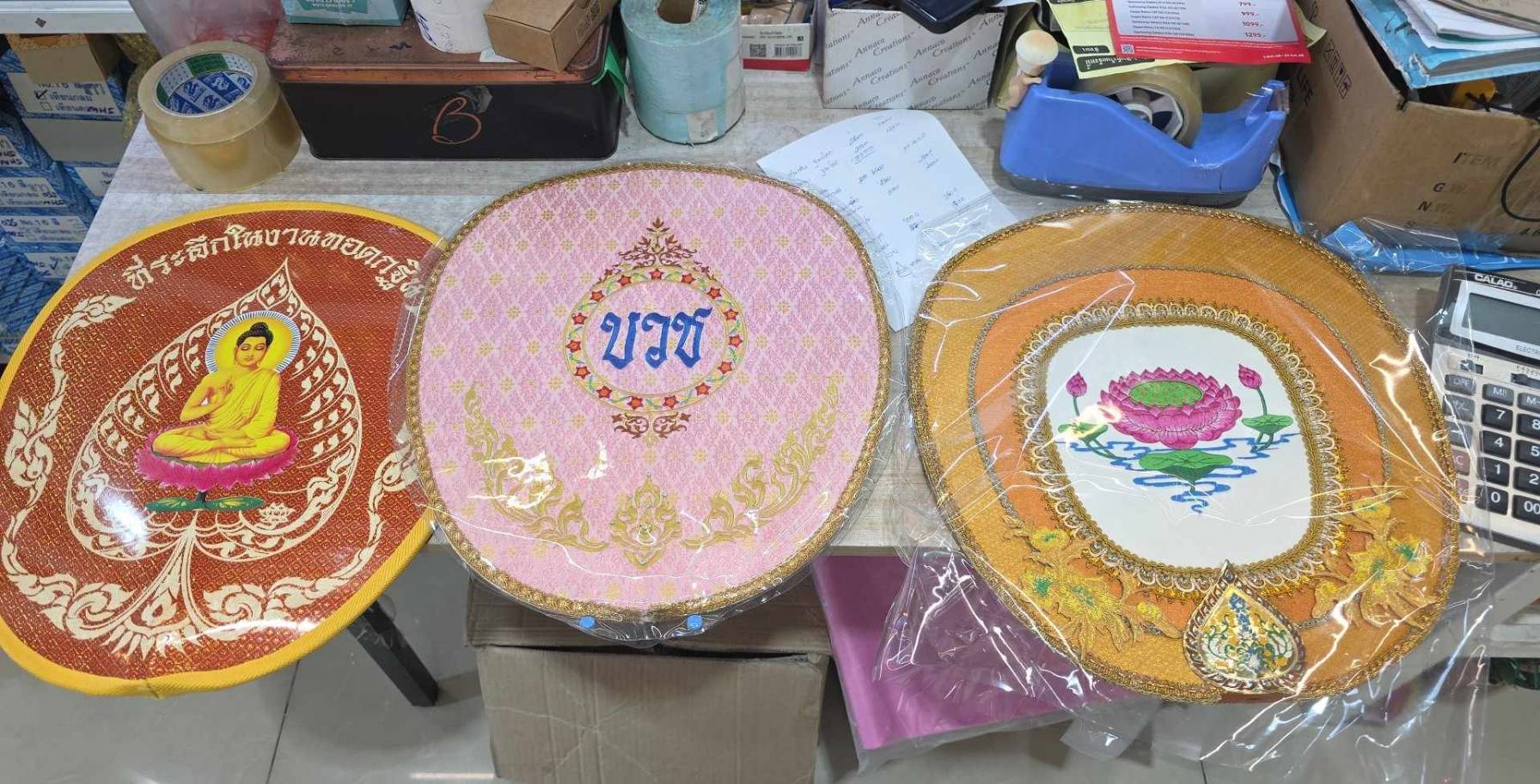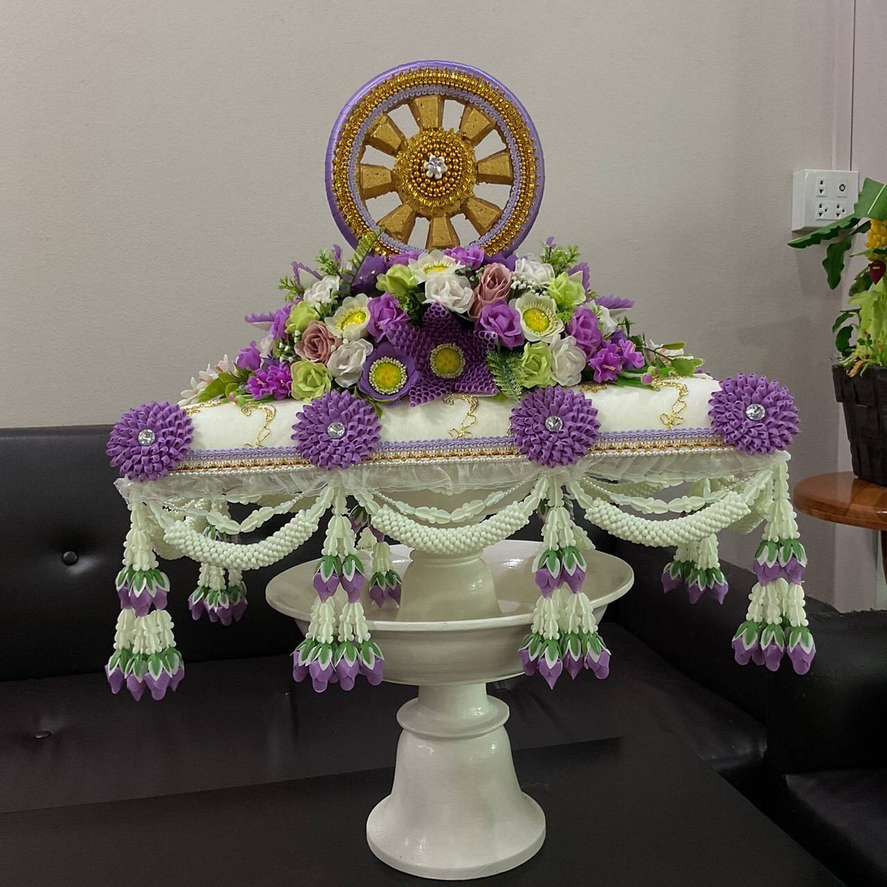 ตาลปัตรและขาตั้งตาลปัตร ถุงย่าม สัปทน หมอนอิง อาสนะ พานแว่นฟ้า ดอกไม้
